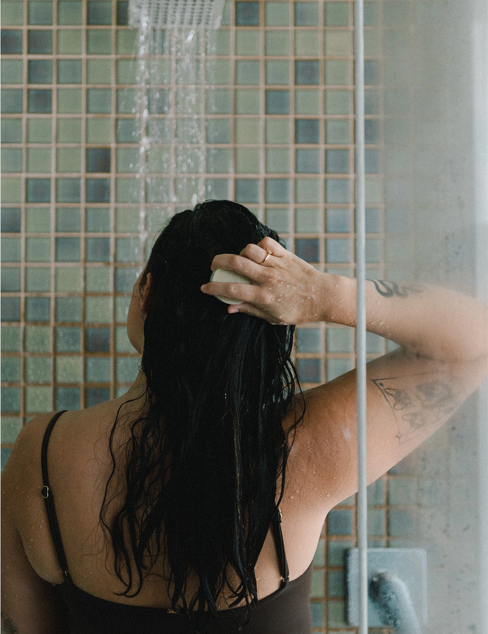 Step 01 – Wet your hair and rub the bar directly onto the scalp. Once lather forms, gently massage for about 5 minutes.